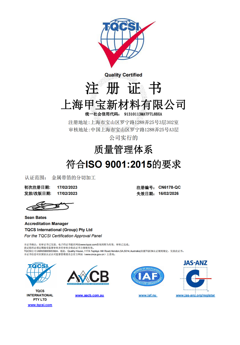 甲寶金屬材料(上海)有限公司主要從事于高精密、高性能、超薄材料的研發(fā)、生產(chǎn)、銷(xiāo)售。...
